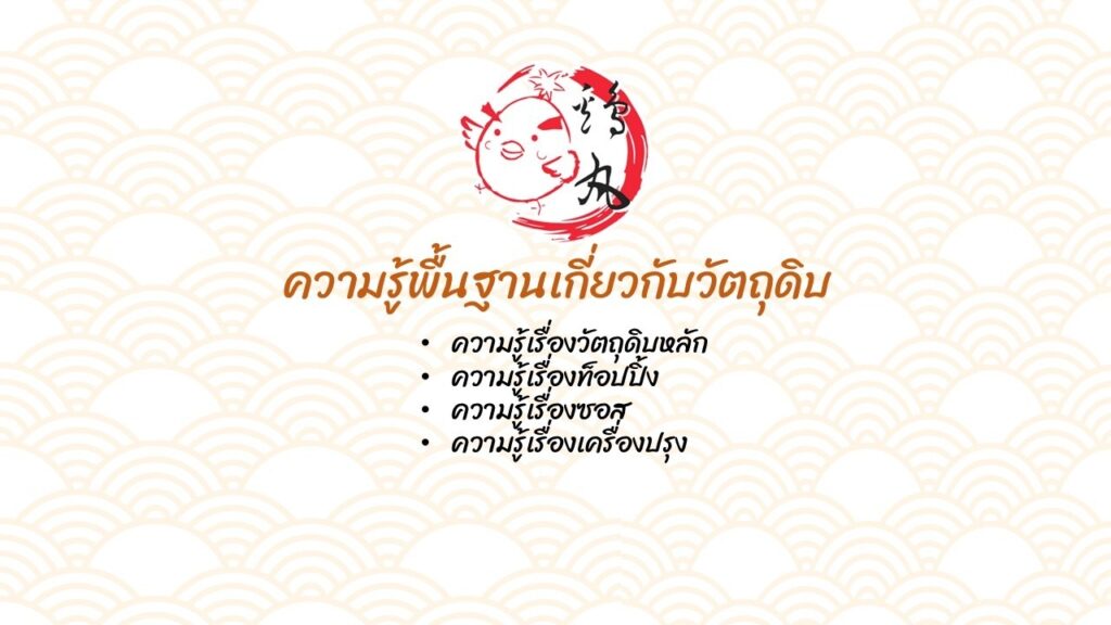 ความรู้เรื่องวัตถุดิบหลักความรู้เรื่องท็อปปิ้งความรู้เรื่องซอสความรู้เรื่องเครื่องปรุง